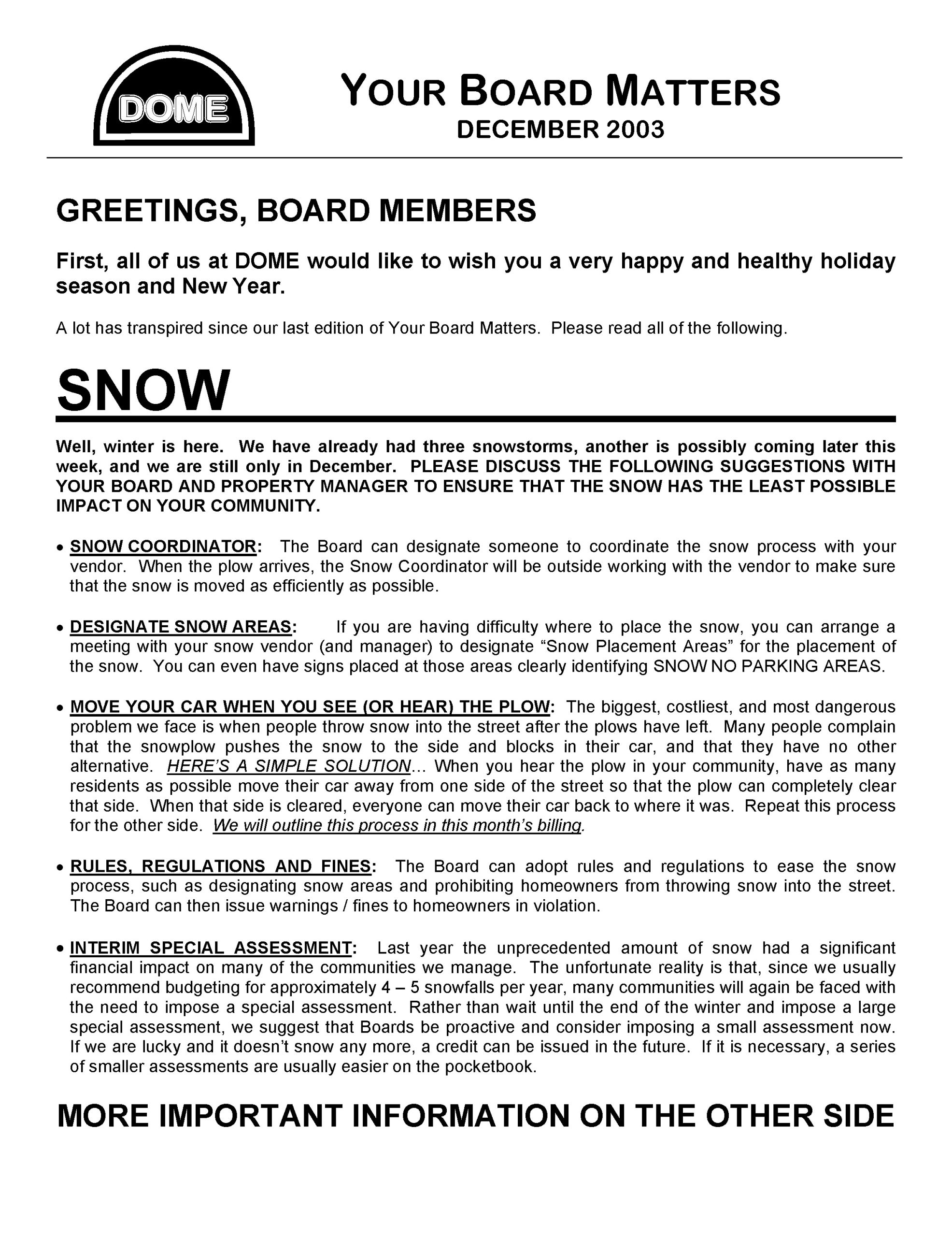 DOME Board Matters