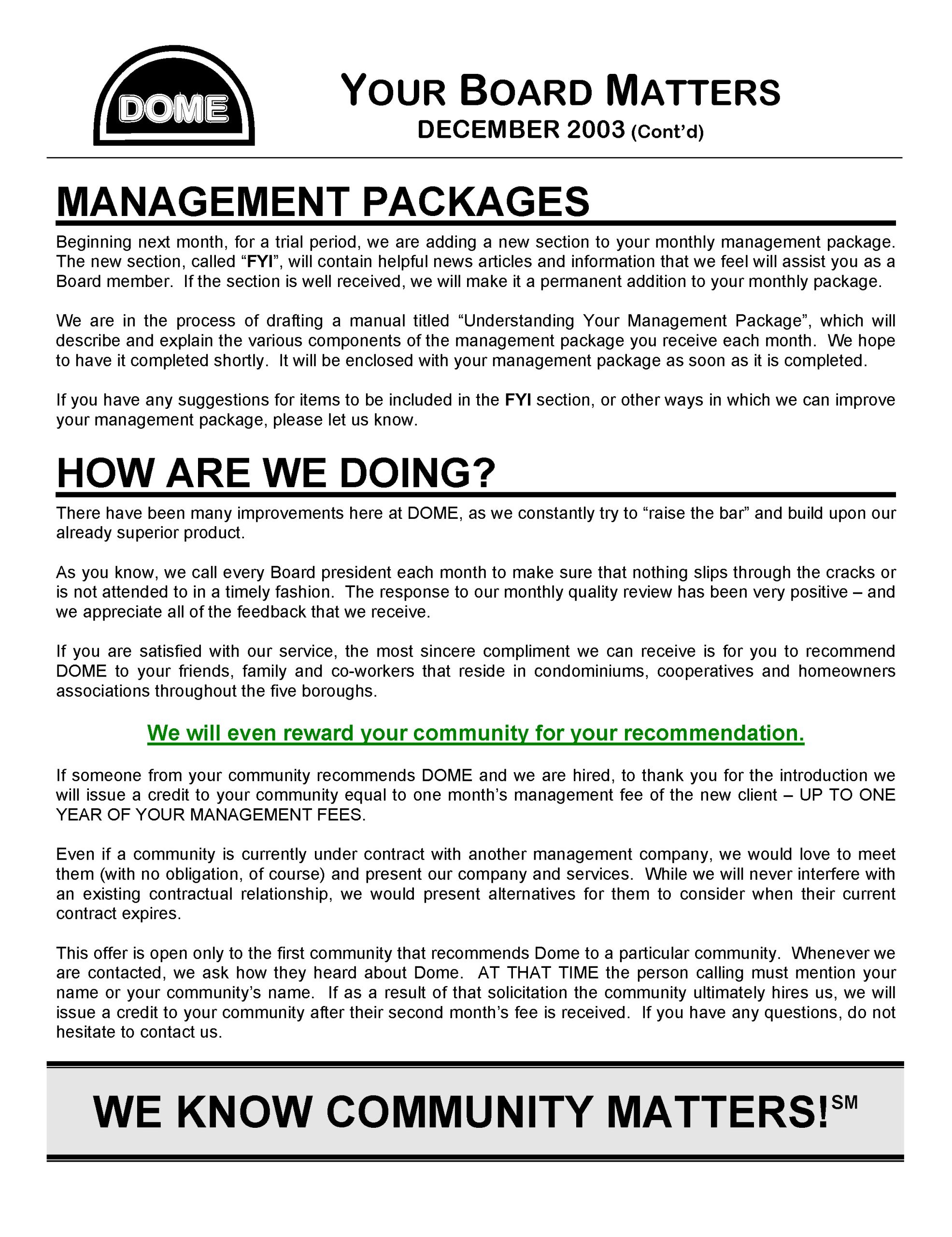 Board Matters – December 2003