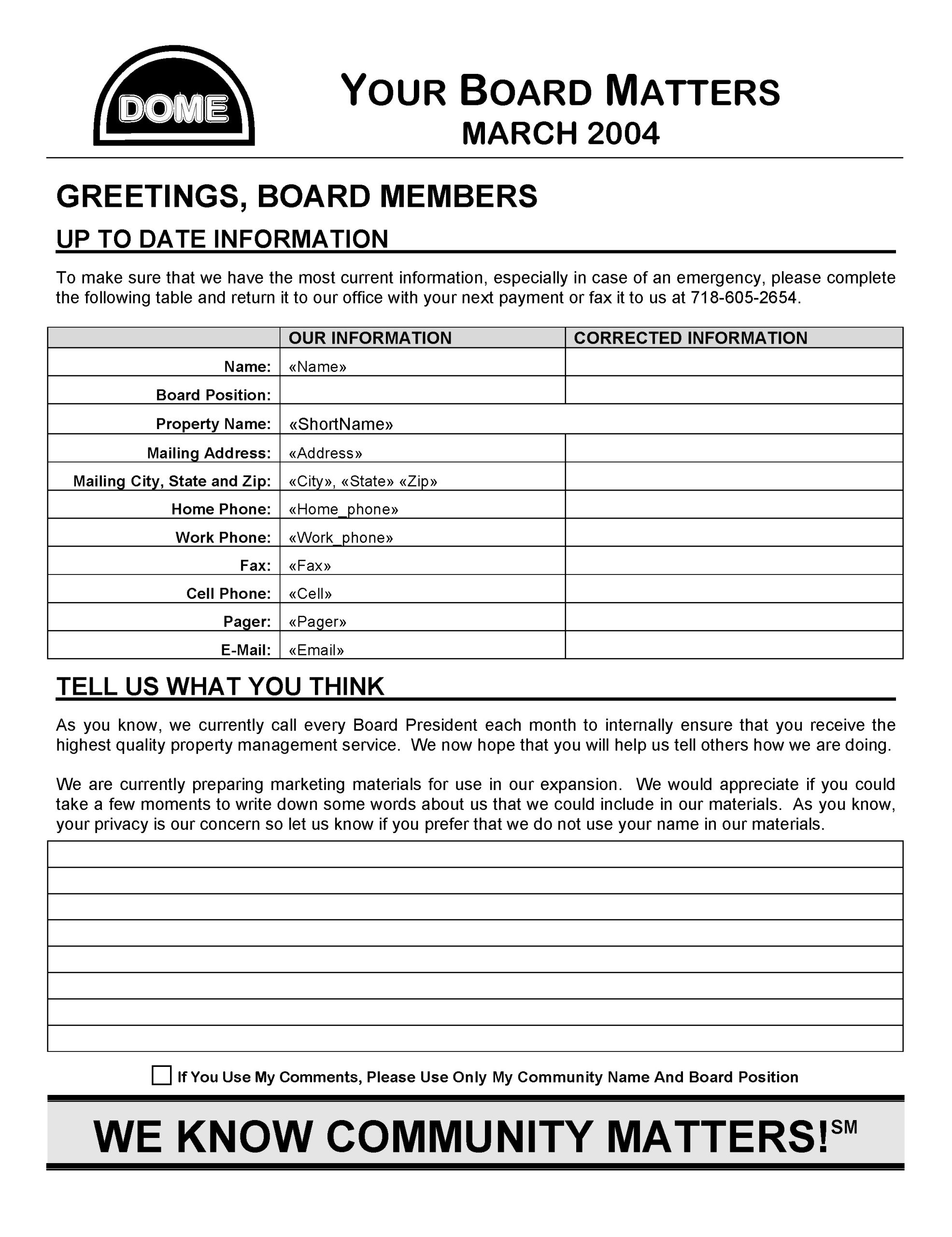 DOME Board Matters