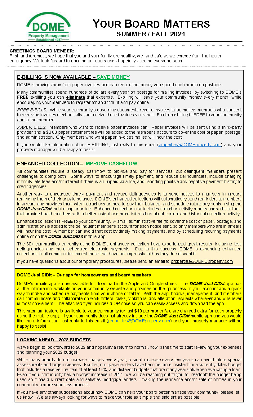 DOME Board Matters