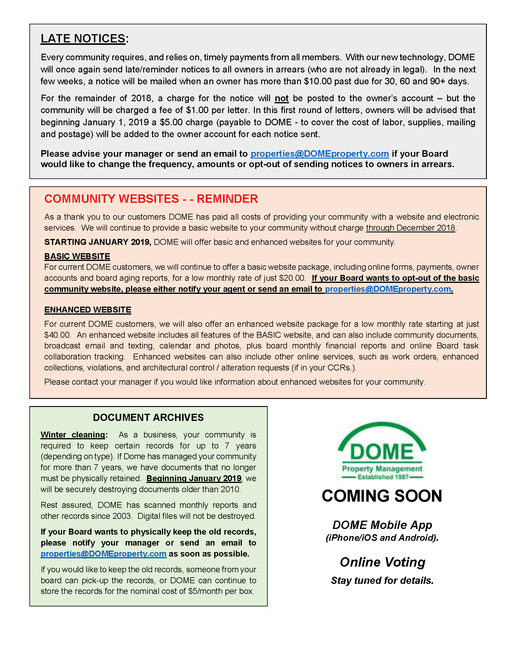 DOME Board Matters