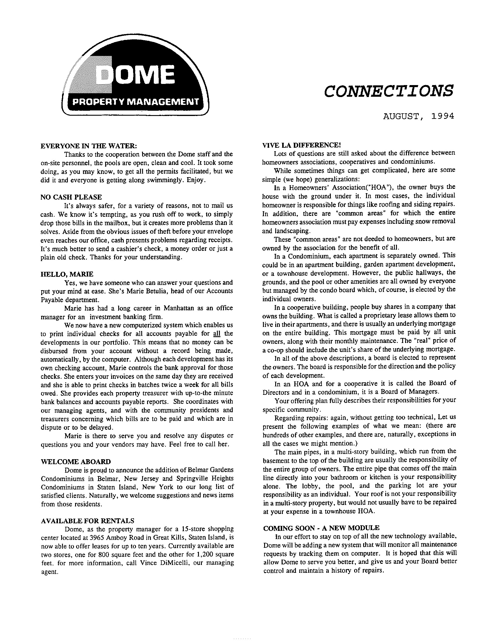 Connections – August, 1994